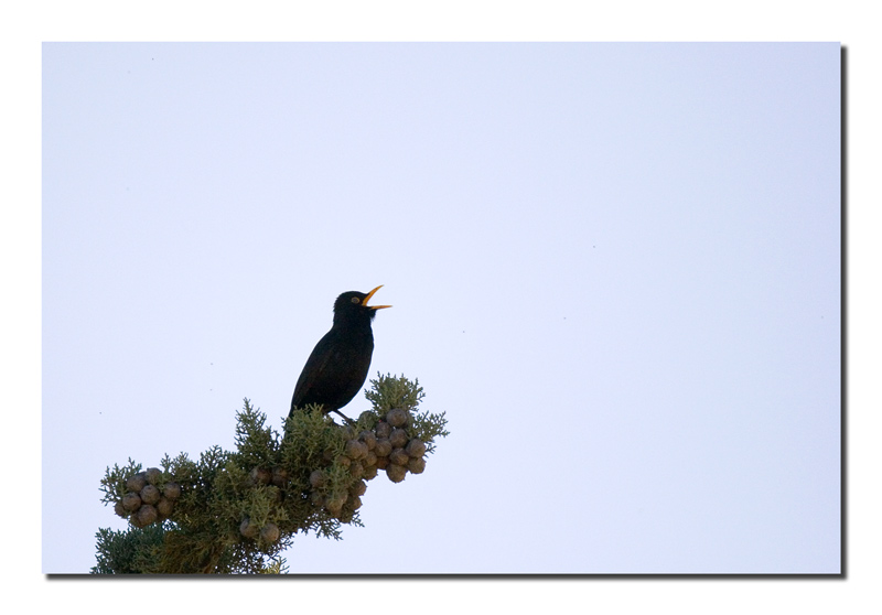 Minimalista e con una composizione inusuale, mi piace, sembra che voglia urlare contro l'infinito sto merlo.