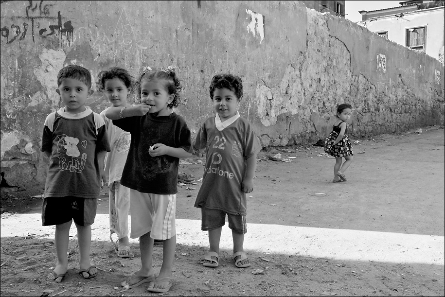 NERO: come al solito le reazioni dei bambini sono imprevedibili e affascinanti. In questa occasione, mentre stavo fotografando verso un altra direzione, si è radunato questo gruppetto; tutti immobili, ipnotizzati dalla vista della fotcamera. Mi sono accucciato per scattare, poco convinto che potesse venire una foto interessante, quando la più piccola si è staccata dal gruppo e ha iniziato ad allontanarsi con quell'espressione imbronciata, come se stesse disapprovando im pieno ciò che stava accadendo. Ho scattato 3 foto in sequenza e ti assicuro che le pose e le espressioni di tutti sono identiche nei 3 scatti (cambia solo la posizione nel fotogramma della bimba che si allontanava, che comunque continuava a guardare indietro). Indipendentemente dal risultato della foto, questo per me rimane uno di quelli scatti di cui mi è rimasto un ricordo emozionante...