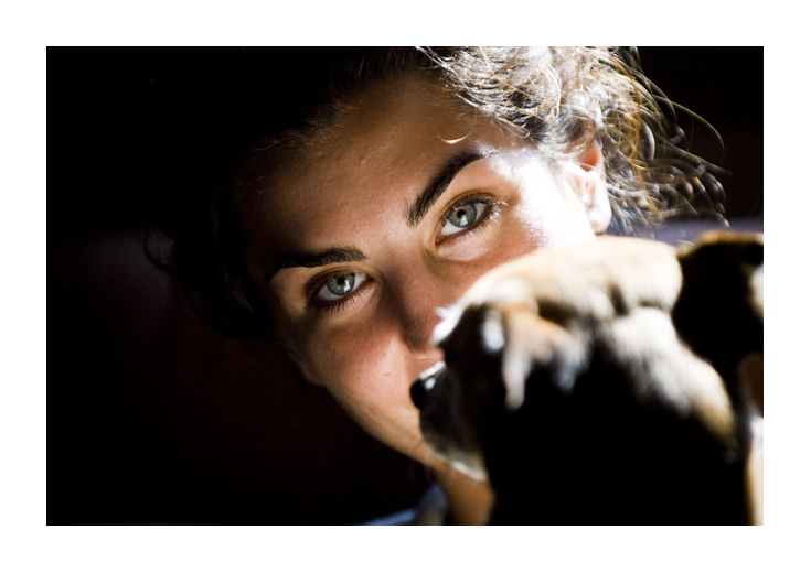 Mentre l'"oggetto" che copre parte del viso, credo che sia completamente fuori posto, nel senso che non ha una forma molto chiara, solo dopo molto che la osservavo ho capito che era un cane (è un cane vero??? ), visto che non è un ritratto rubato (il soggetto è ben cosciente della foto), questa cosa potrebbe sembrare più un errore di inquadratura che una cosa voluta. Per me toglie molta espressività del soggetto, o comunque non aggiunge niente.