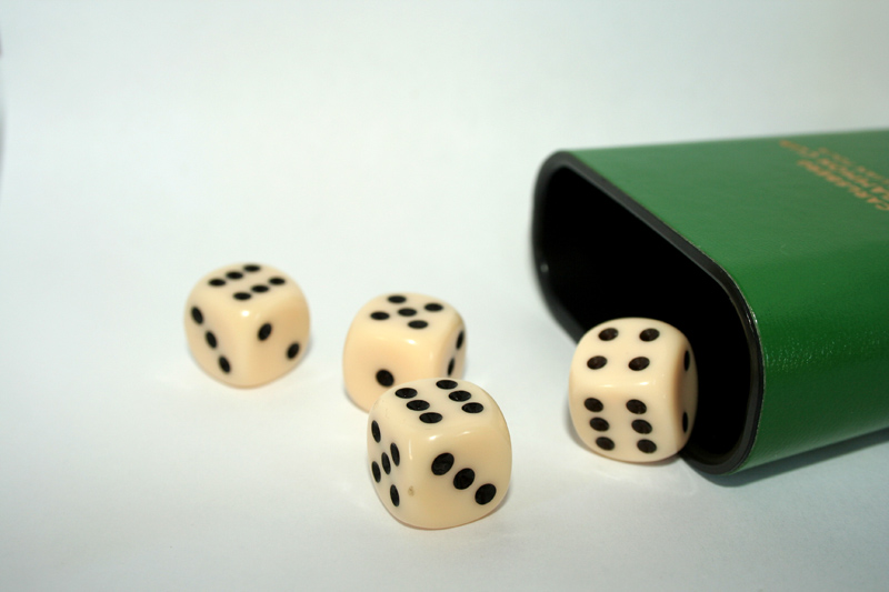 Avrei fatto in modo che tutti i dadi fossero a fuoco ed avrei eliminato la macchia scura in alto a sinistra..... per il taglio probabilmente avrei incluso tutto il tiradadi...
