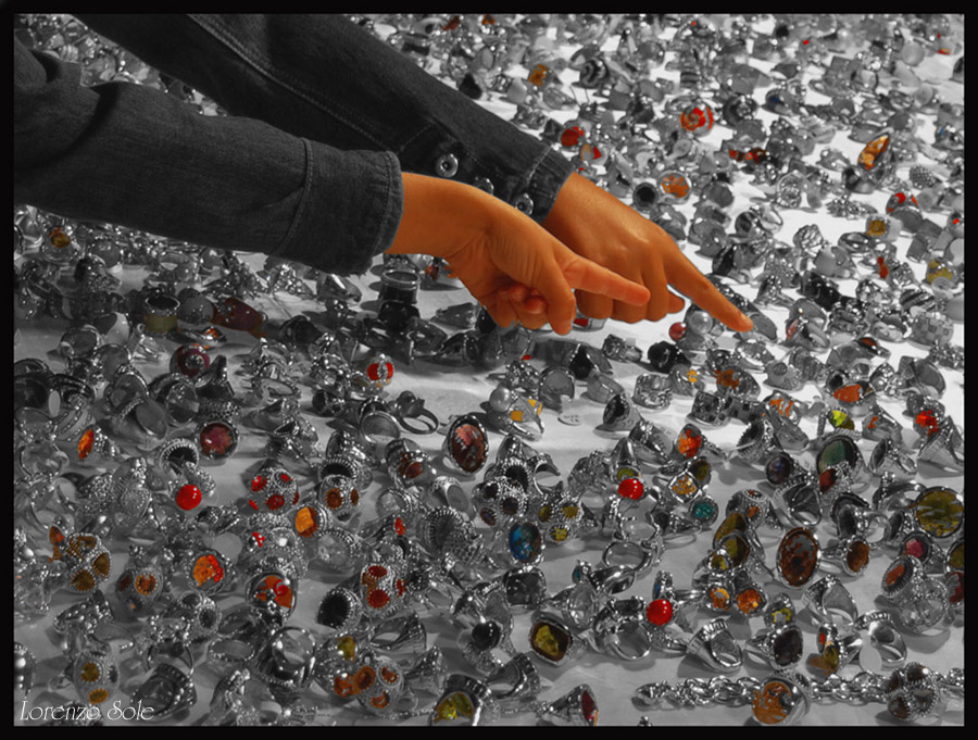 ciao frank, la desaturazione parziale in questo caso rappresenta la vista dell'occhio maschile che ignora gli ori e i gioielli mentre lo sguardo femmineo coglie e rimane atratto dai gioielli e dai preziosi come una gazza ladra...questo è quello che volevo rappresentare...il titolo è un semiincipt che guida l'osservatore verso questa mia ironica rappresentazione, ciao Smile