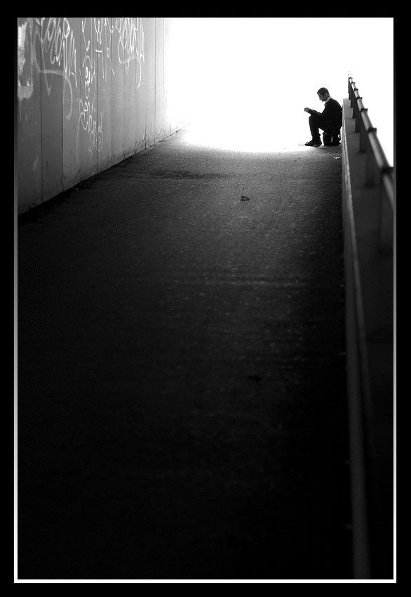 la lettura fa uscire dal tunnel del buio verso la luce. io intepreto così. bella foto ben pensata e ben realizzata ciao |