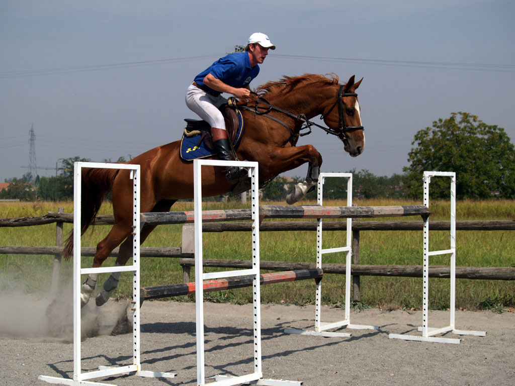 | tecnicamente un pessimo salto .. il cavaliere non è in tempo con il cavallo , è indietro .. gamba errata completamente, appeso alle redini , mano non appoggita al collo del cavallo. Santo cavallo .. bravo che regge il salto ugualmente , sta in perfetto appoggio sui posteriori , buona la raccolta degli anteriori , buona la inclinazione del collo . buon salto, peccato il cavaliere |