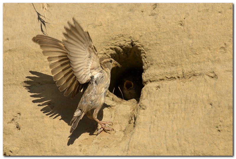 Mentre facevo le foto hai gruccioni, ho notato che divere buche erano state prese dai passeri per nidificare e andavano su e
