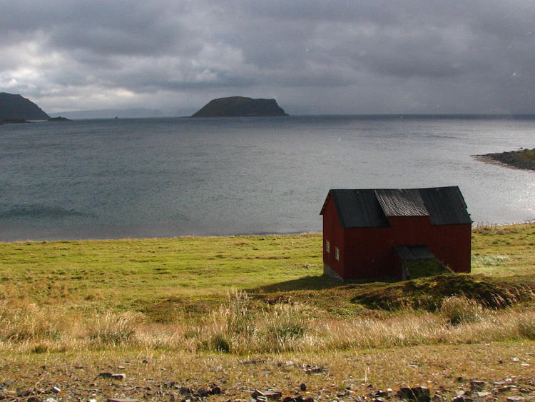 un contrasto netto tra i colori caldi illuminati dal pallido sole ed il mare gelido sotto un cielo freddo e minaccioso.