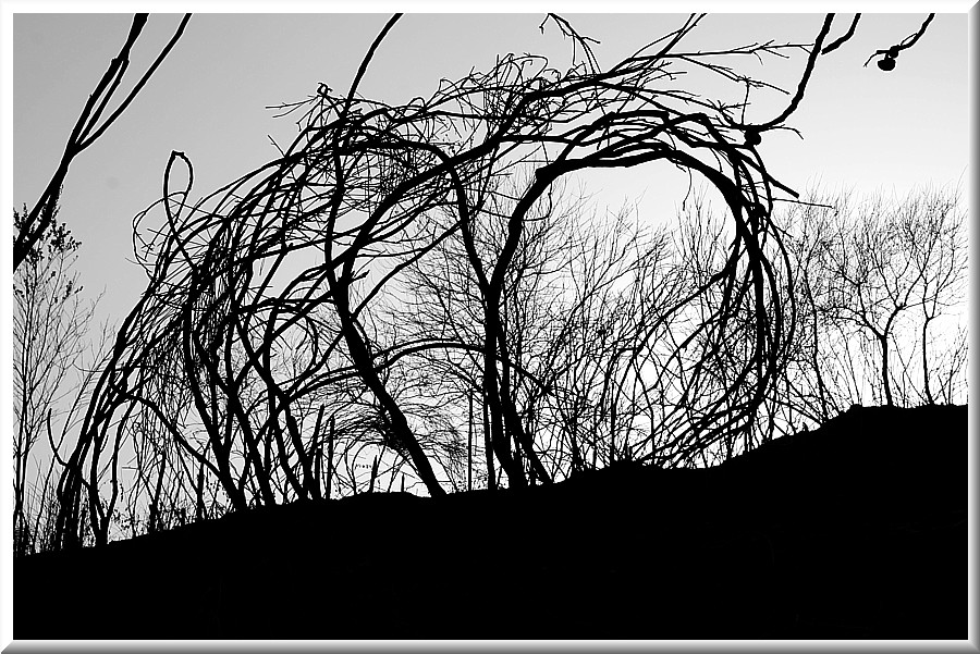 ... per la prima foto ... grafisimi naturali difficili da domare ... ci hai provato sfruttando il controluce ... non male ... gli alberi dietro, forse spezzano un po' l'atmosfera (troppo normali e sovrapposti a quelli in primo piano) ... certo altre prove dovevano e potevano essere fatte ... la natura ti aveva offerto un ottimo spunto con questi rami nodosi e contorti ...