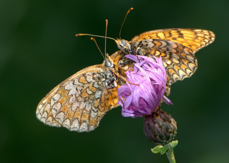 Un'ottima macro, Bellissime tutte e due le farfalle che sembrano essersi messe in posa, bello anche lo sfondo Ok!
