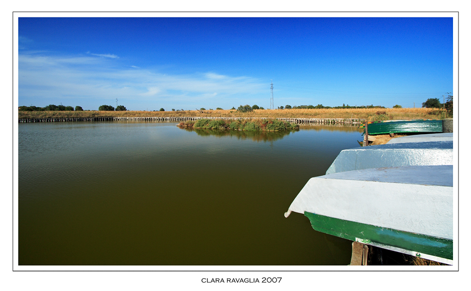 Mi piace l'opposizione dei due colori azzurro caldo del cielo e verde acido freddo dell'acqua.. e le barche stanno lì a guardare...