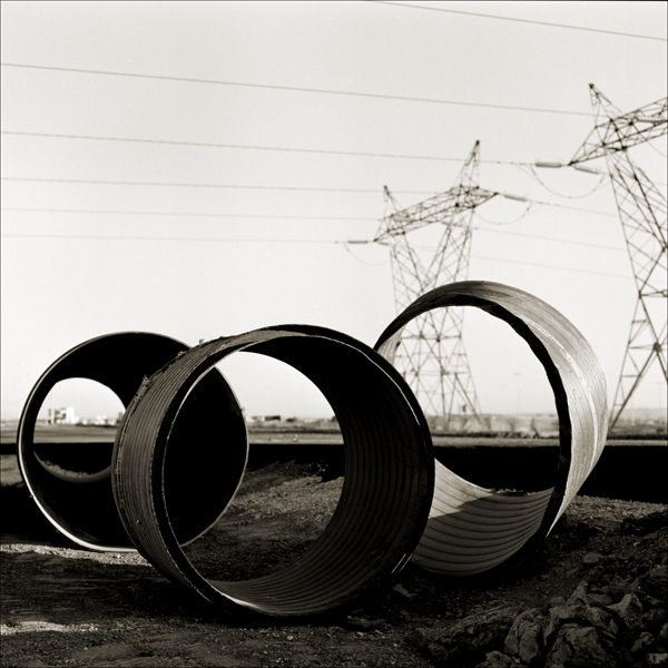 Ed è un bel bianco nero, che nonostante le condizioni di controluce, mantiene leggibile il gioco delle ombre scurissime all’interno dei tubi e spalanca in tonalità di grigio tenue la luminosità del cielo.