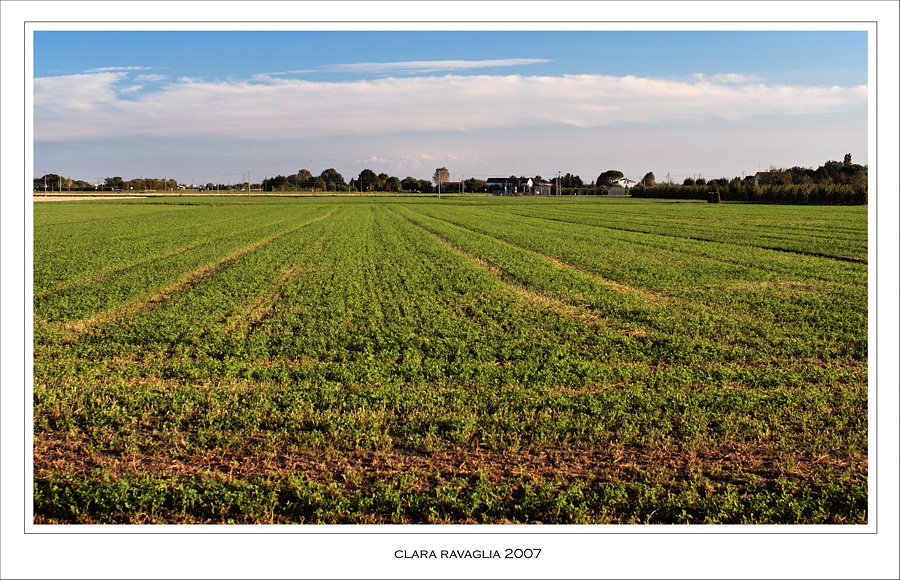 ciao clara , come ha già detto sanpit la semplicità di alcuni tuoi scatti è disarmante , non è per niente difficile banalizzare un campo come quello che hai fotografato , anzi , eppure tu sei riuscita e renderlo interessante senza un pw pesante ne senza cercare un soggetto che lo riempisse , eppure in questo scatto c'è molto ... i colori , la prospettiva , la direttrice marrone in primo piano che da il via all'occhio che inizia ad esplorare questa campagna .