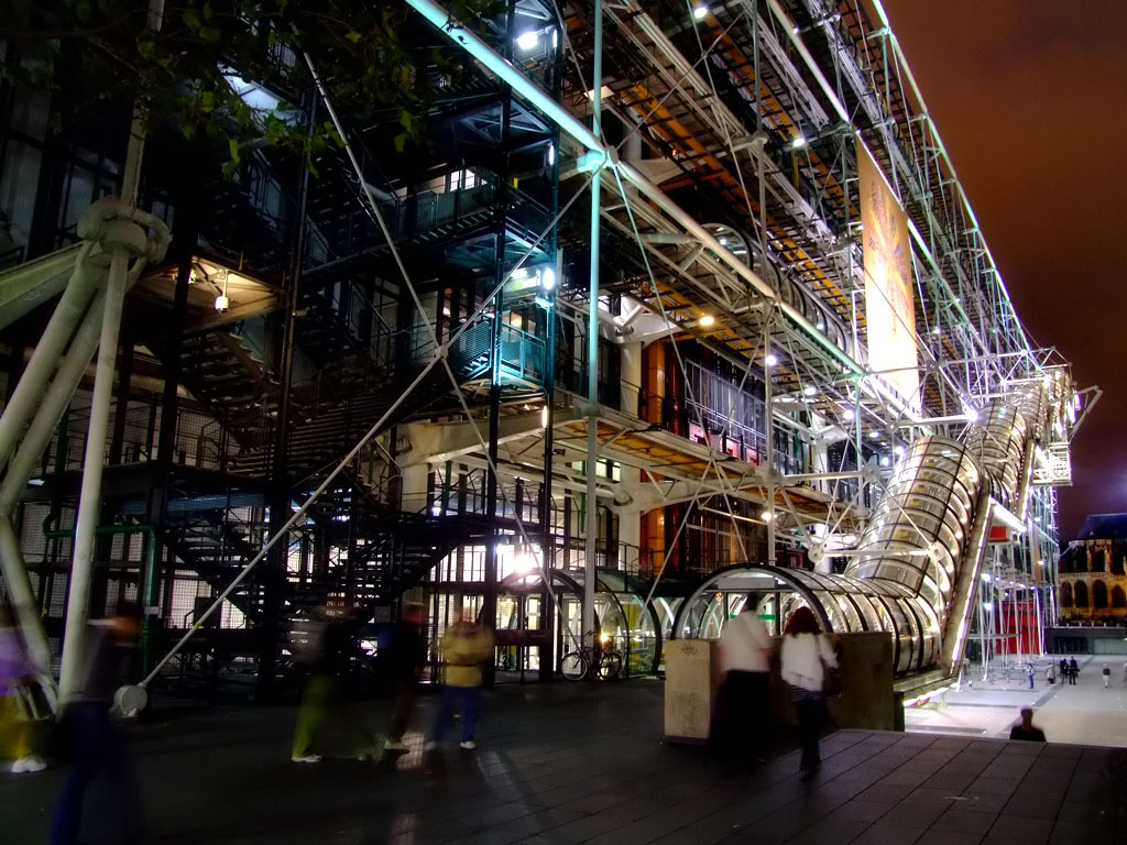 Alle prime luci della notte al Centre Pompidou...