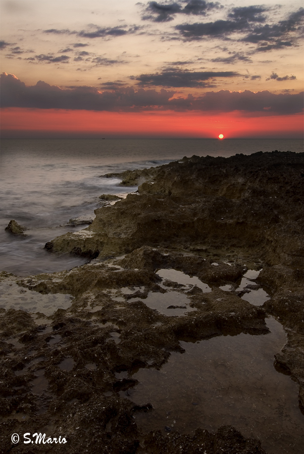 Bella composizione, buona luce. Il sole che "tocca" il mare mi piace parecchio.