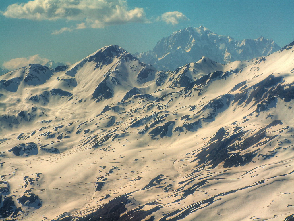 Davvero una bella emozione questo scatto, un disegno naturale dipinto di rilievi e neve e lo sfondo imponente sfuma incorniciato dalle nuvole, mi piace tanto