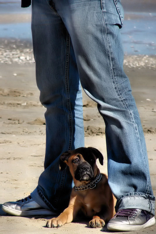 Grazie Dovevi vedere... il padrone stava parlando al cell... come faceva due passi il cucciolo si alzava e si rimetteva esattamente al centro delle sue gambe come in cerca di protezione.. dolcissimo... |
