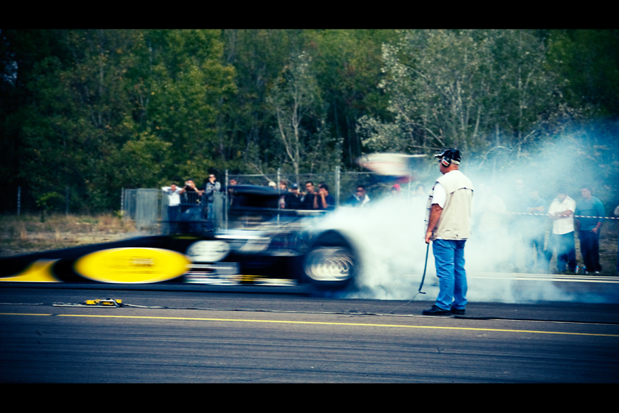 Una posizione di 3/4 mi dava maggiore profondità..il fumo delle gomme sarebbe stato più evidente, la macchina avrebbe acquistato in dinamismo con tutta la sua lunghezza, quelle macchine ( se ho capito di cosa si tratta " dragster) hannno il muso a punta e dietro tutto motore... forse no..bho..