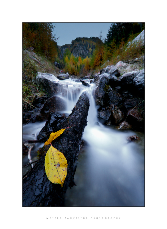 il colore del cielo non convince pienamente nemmeno me... ma per il resto la trovo molto buona, dal primo piano con le foglie e col tronco in diagonale che conduce lo sguardo verso gli alberi colorati d'autunno (quasi come ad indicare un legame tra le foglie gialle e gli alberi colorati), all'effetto setoso dell'acqua _________________ WWW.PAOLODIFALCO.COM Canon 400D + Canon 7D