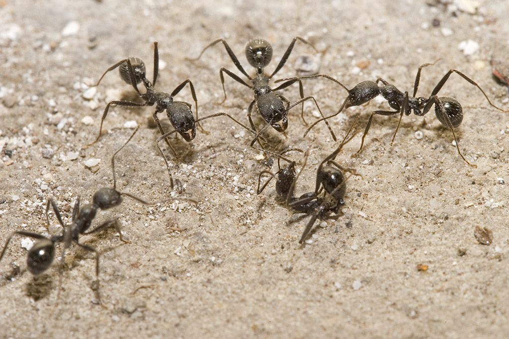 In effetti per cogliere questo momento ho aspettato pazientemente, vedevo che le formiche passando si fermavano un'istante vicino al corpo della compagna per poi proseguire con le loro faccende ma dopo averne presa una davanti alla caduta mi sono chiesto: " chissà se riesco a prenderne più d'una, verrabbe una bella scena" e allora mi sono messo di punta e sono riuscito a cogliere questo gruppetto... meglio di quanto sperassi.