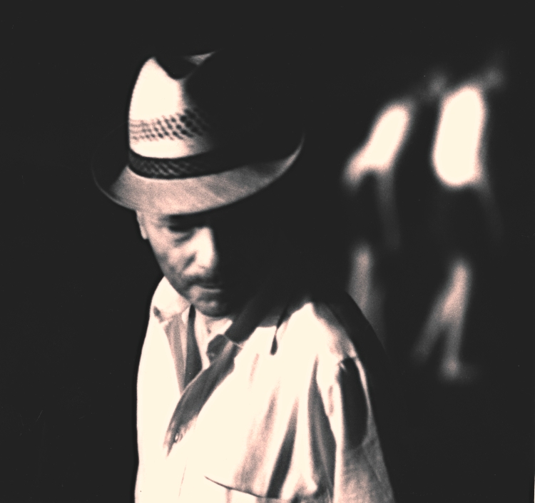 Così la costruzione dell'immagine è nata con l'intento di cogliere un sopravvissuto ai campi di concentramento colto mentre è assorto nella sua memoria e dove rievoca (le due figure alle sue spalle appena definibili)
