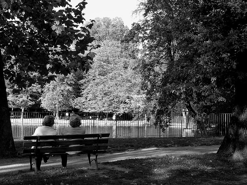 spesso le persone anziane per passare il tempo si ritrovano al parco per quattro chiacchere...