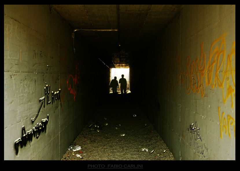 Bella la luce che esplode in fondo al tunnel, delineando così bene le due figure, e anche quella che all'ingresso molto velocemente decade per lasciar posto al buio centrale..