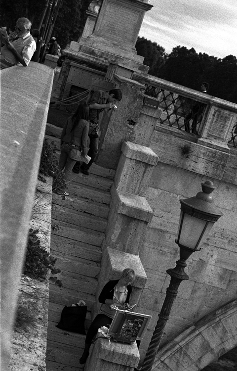 Bella l'inquadratura obliqua e la composizione che rappresenta contemporaneamente tre scene diverse, due delle quali si contrappongono visivamente e concettualmente: la tranquilla lettura del giornale dell'anziano e la vita avventurosa ed errabonda della ragazza.