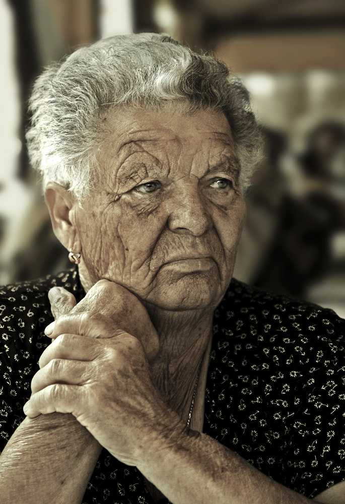 In realtà, un'immagine da osservare a lungo dove ciascuna ruga racconta qualcosa del passato della donna. Gli occhi penetranti riconducono con immediatezza al suo presente. Al suo futuro.