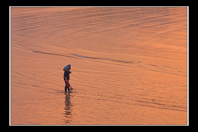 Oro che si tinge di rosa sotto i piedi e oro nel cuore..... la gioia di un nonno che porta sulle sue spalle il nipotino alla scoperta condivisa delle meraviglie del quotidiano.... gli sta regalando un ricordo che forse fra tanti anni avrà il colore dell'acqua immobile che li circonda.....