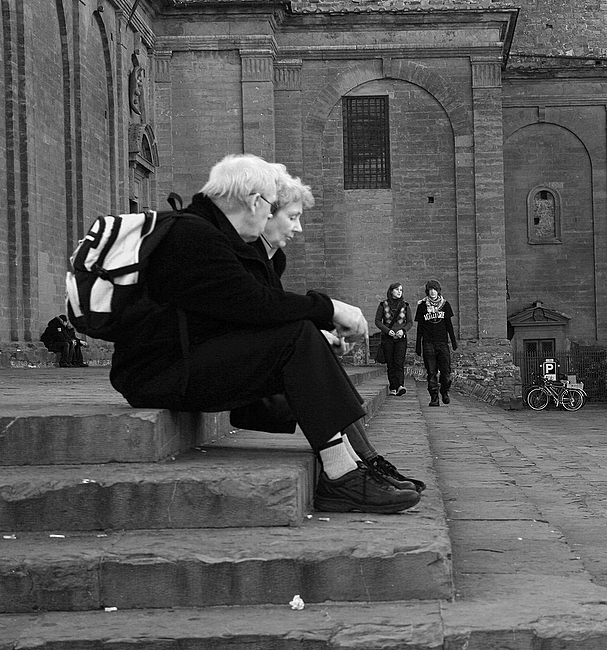Per quanto riguarda il soggetto potrebbe essere interessante però sento che manca qualcosa che dia interesse all'immagine, magari un gesto, uno scambio di sguardi tra le due coppie o un particolare atteggiamento, qualcosa che possa rendere lo scatto più vivo.