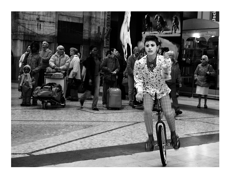 Premesso che la foto non mi dispiace affatto, l'effetto inseguimento dei cavalli non mi sembra che necessariamente salti all'occhio. La foto si regge in ogni caso sulla rappresentazione di un soggetto interessante e del contesto, il tutto arricchito da una buona composizione e da un b/n brillante.