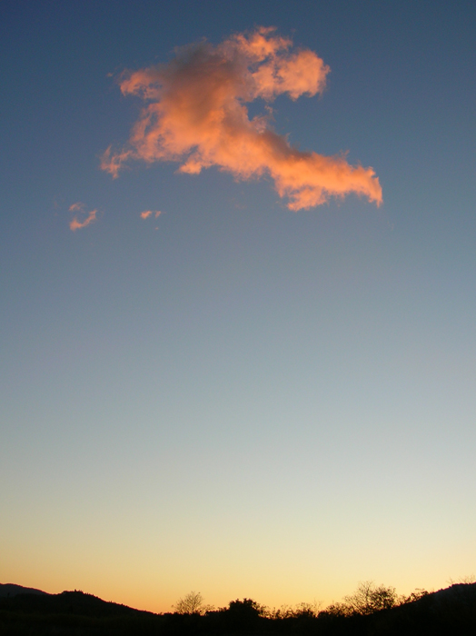 Una sottile nuvola vaga nel cielo al tramonto trasportata dal vento...