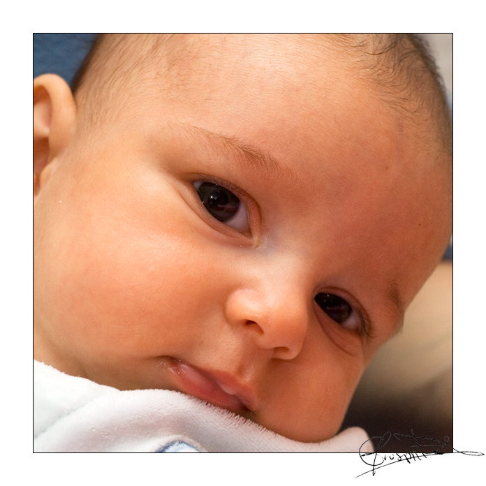 foto bellissima, complimenti ! ne avevo gia' viste un paio, del piccolo, ma in questa c'e' qualcosa nello sguardo, come una sorta di placida consapevolezza, una serenita' completa, e ho idea che la foto sia riuscita a renderlo appieno, quello sguardo. Ancora complimenti !