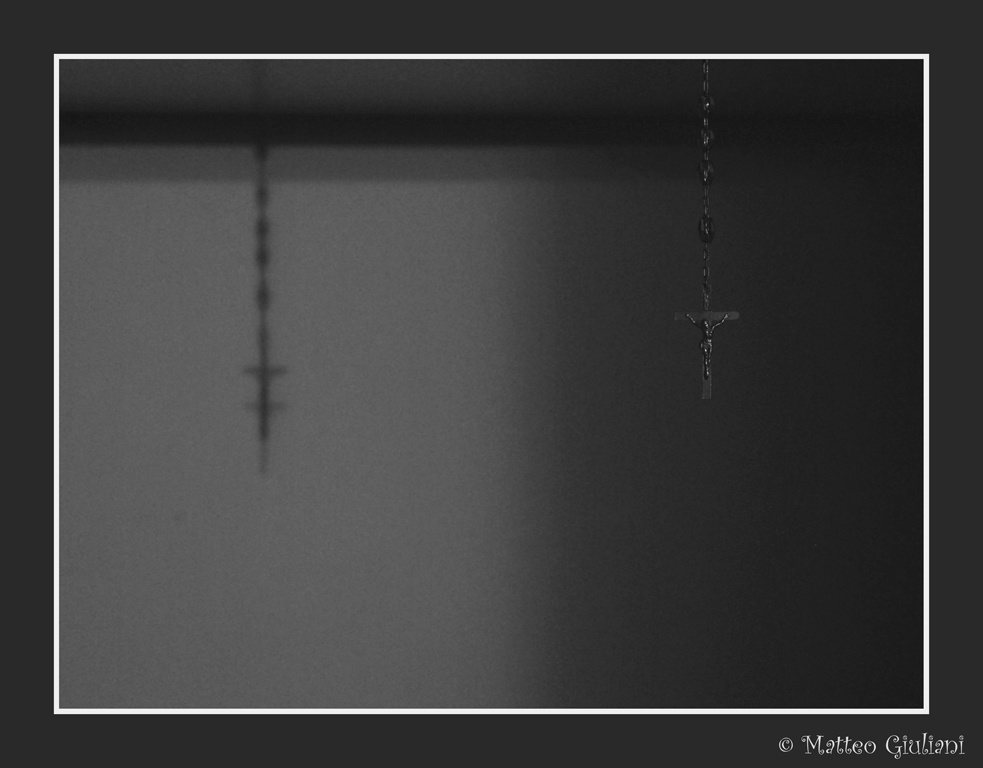 Il grande rammarico è che il crocefisso e la collana non siano ben illuminato. Questo implica che il tutto è troppo buio. Non c'è abbastanza stacco del soggetto dallo sfondo. Inoltre anche l'ombra l'avrei gradita più definita, dettata da una luce un pelo più forte.