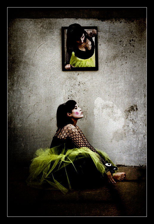 mi spiace aggiungere niente alle parole di marranza, ma davvero godibile è il termine esatto! colori superbi che assomigliano quasi a un b/n fatto di giallo, muro che si scrosta sotto agli occhi, scenetta teatrale da attrice, il tutù che con le pieghe diventa di vetro, le gote rossedi una bambola e la vignettatura immancabile..beh, bravissima!