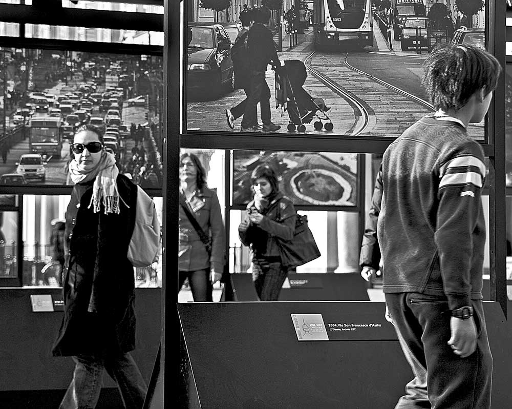 bellissimo il gioco che deriva dai diversi piani e dalla realtà che si fonde con la finzione!!! il traffico e il caos rappresentati nella mostra riprendono la confusione della realtà! WOW! ... ma che mostra è? Dove (pzza san carlo???) e quando?