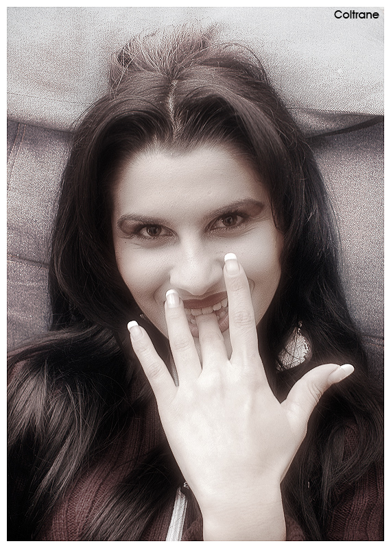 l espressione sicuramente è particolare...e colpisce...per me ha qualcosa di inquetante...forse è il sorriso di un fascino diabolico o il trucco degli occhi...