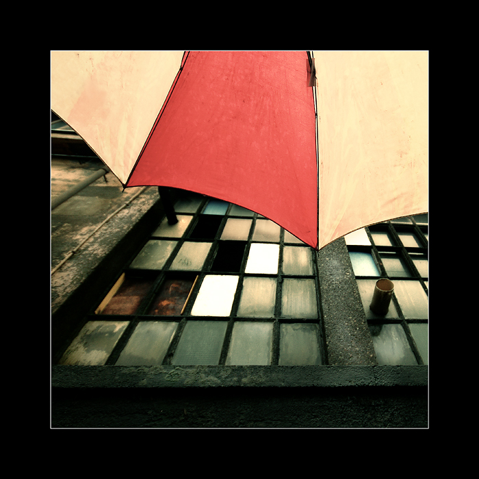 anche in questo caso, un insieme di finestre e di colori strani e acidi, e un ombrello, hanno creato la giusta successione di linee e di colori e di zone sfuocate e non per tirar fuori una immagine molto particolare..