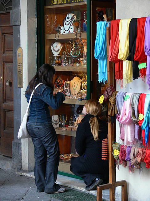 Pisa. Negozietto nepalese di gioie, pietre dure, oggetti d'arte e tessuti in Piazza delle Vettovaglie.