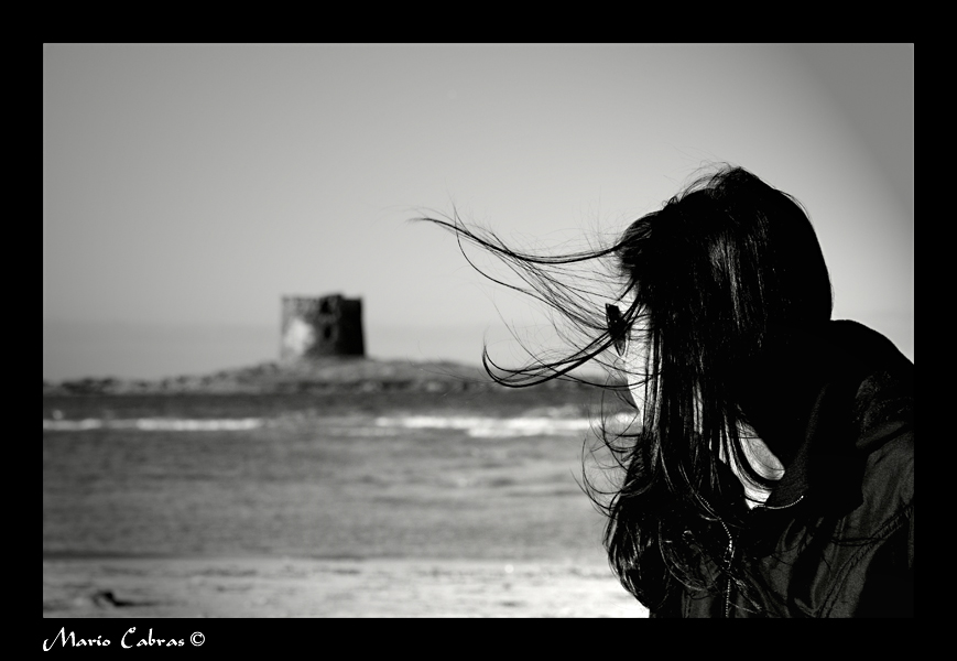 Ottima la posa della modella con lo sguardo rivolto alla torre ed ottima l'essenzialità degli elementi presenti nell'inuqdratura, la presenza umana, il mare, la solitudine.