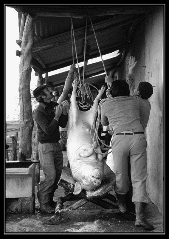 mi fa venire in mente una bella mostra fotografica che c'è stata qui a pavia un paio di anni fà...proprio sul tema della macellazione del maiale e delle persone che ci stanno attorno...