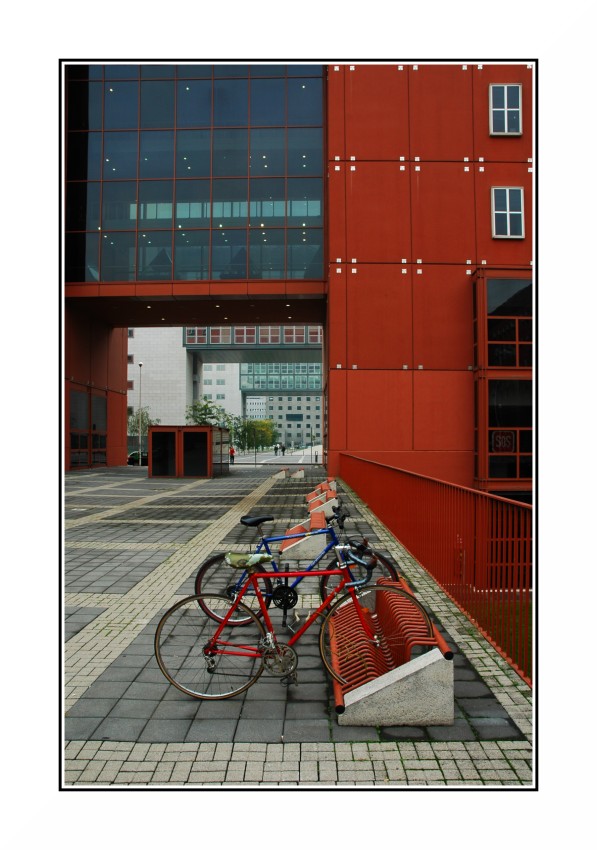 Direi molto ben costruita con le sue linee prospettiche convergenti e i suoi toni di colore, con la prima bicicletta e le rastrelliere in tinta con la facciata e gli altri elementi architettonici. Hai fatto bene ovviamente a scegliere il colore. In effetti, hai scelto di ritrarre un paesaggio decisamente sconfortevole e disumano - almeno dal mio punto di vista. Ma una bella fotografia non è necessariamente la fotografia di una cosa bella; e questo è appunto il caso.