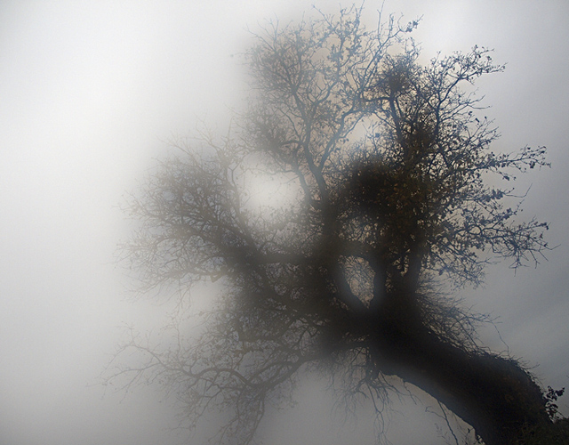 Trovo che la prima immagine sia un buon punto di arrivo, perchè vi è un rapporto paritetico tra nebbia e albero, nel senso che nessuno dei due prevale sull'altro, mantenendo un piacevole equilibrio formale e visivo.