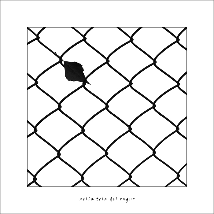 Unica, un'unica foglia che poggiata su una rete sembra proprio essere una creatura nella tela del ragno..