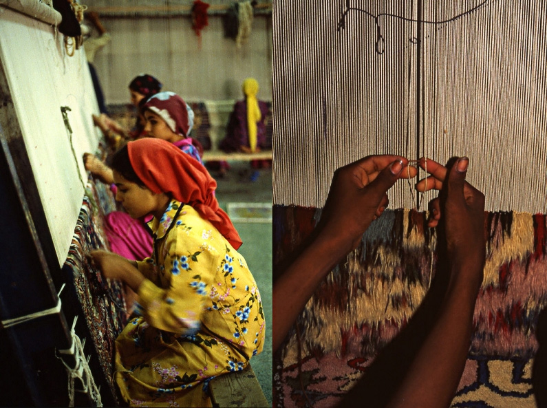 Alcuni bambini vengono scelti per lavorare ai tappeti. Preferibili agli adulti perchè hanno dita piccole, agili e veloci. Un tappeto può contare fino a 8.000.000 di nodi. Quindi otto milioni di gesti. I bambini lavorano anche fino a 10 ore al giorno.