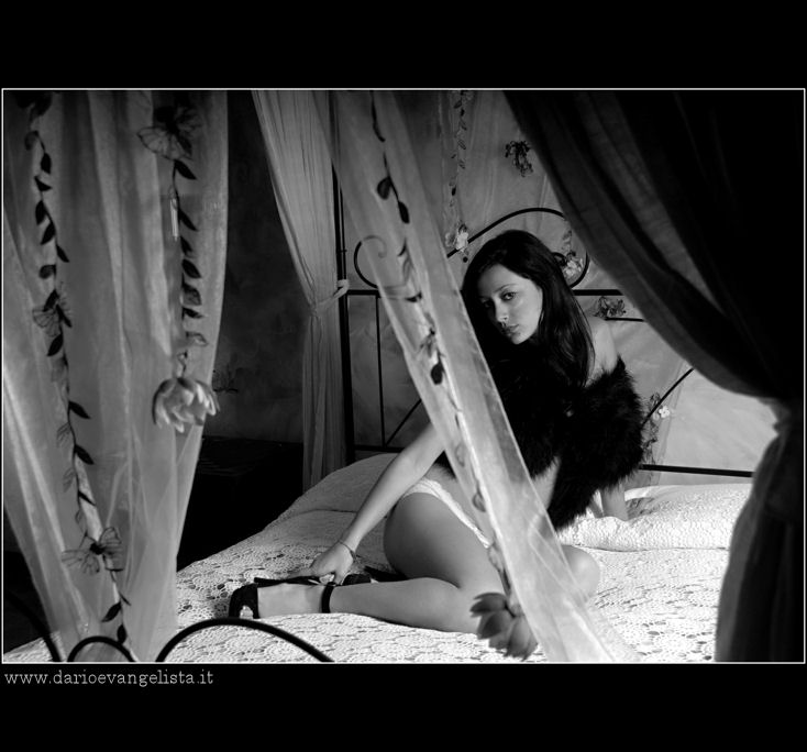 Caro Dario, ti faccio i complimenti, questo è un bianco e nero davvero sontuoso, ricco di tantissime tonalità, dal bianco stupendamente dettagliato della coperta al nero della tenda con il passaggio intermedio dei veli bianchi meno illuminati.