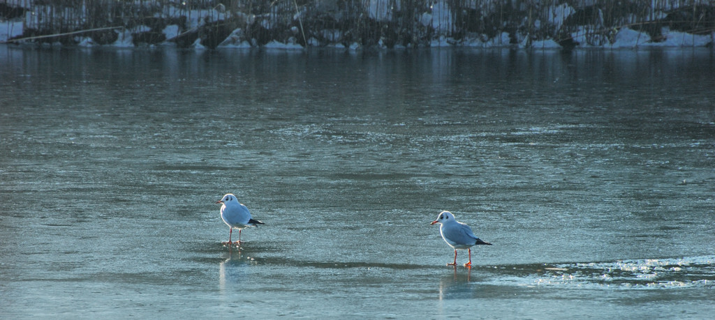 Ho provato a tagliare in alto e lasciare in basso (ci sono ancora un paio di metri di ghiaccio...) ma sembrava peggio. Lo sfondo fa un pò da cornice. Se stringevo di più sui gabbiani perdeva troppo in qualità, mettendola a questa dimensione. Il 70-300VR è un buon vetro ma non è il 300f2.8, purtroppo...