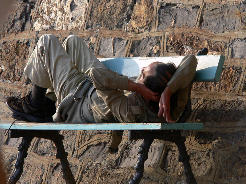 si, oppure avvicinato ancora di più l'inquadratura, a formare qualche diagonale, o a fare eco tra rughe, panchina malandata e muraglia.
