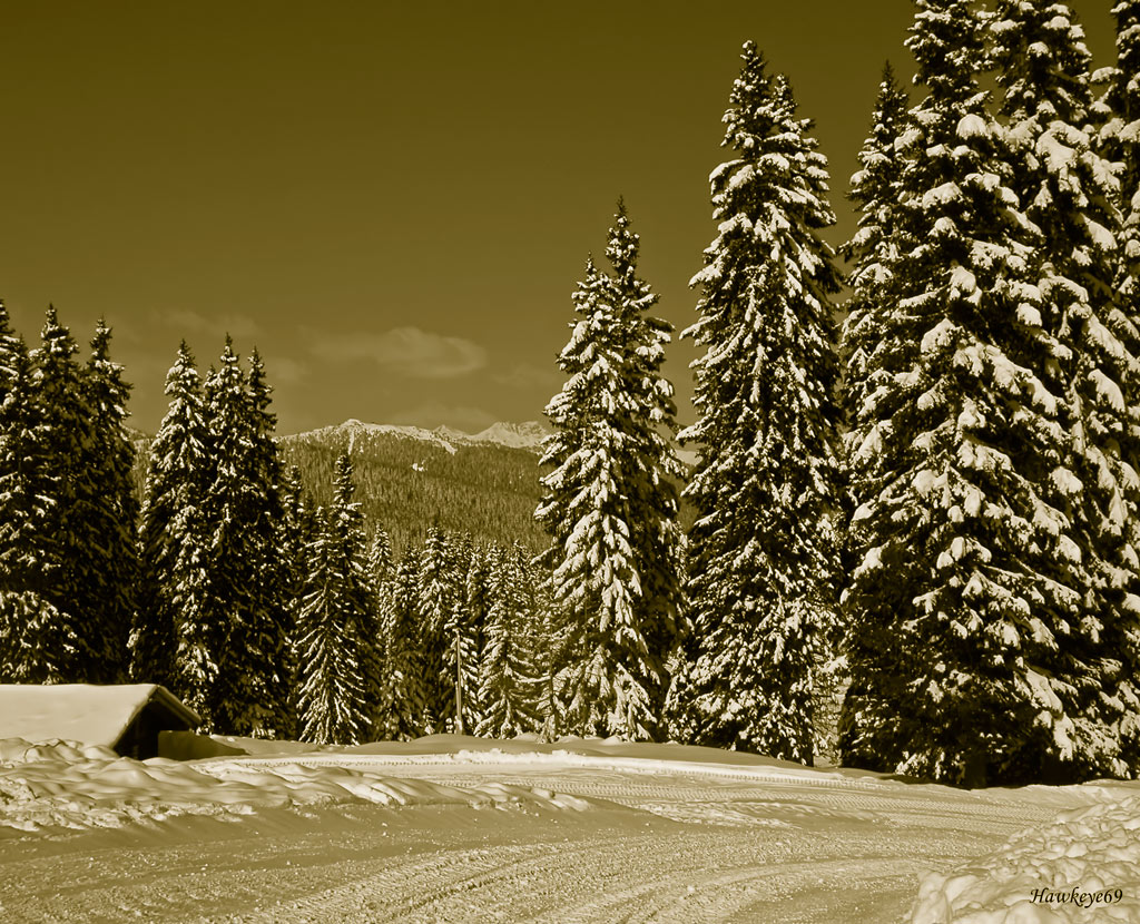 bella questa immagine montana, mi piace anche il viraggio robusto, un po' inusuale ma che mette ben in risalto i volumi della neve.