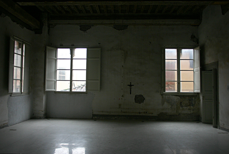 L'inquadratura l'ho voluta esattamente così per esasperare al massimo il senso di vuoto e staticità dell'ambiente. Che vuoto non è, anzi direi che è pienissimo, perchè anche se proporzionalmente alla superficie dell'immagine il Cristo rappresenta davvero un inezia, lo stesso riesce a riempire la stanza con la sua presenza.