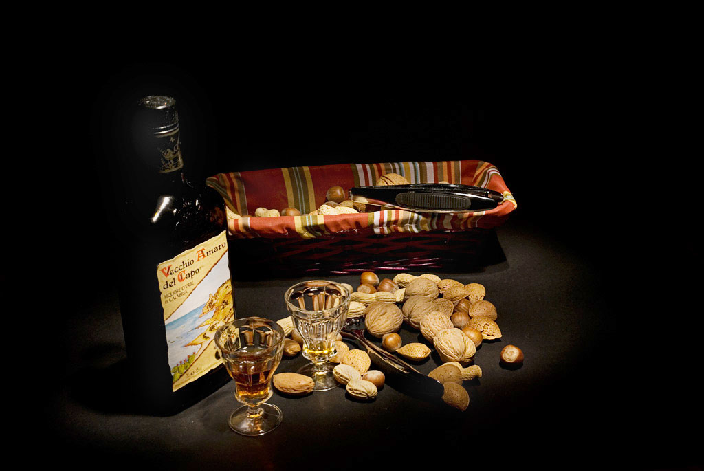 la luce mi sembra quasi troppa sulle noci, buona invece sulla bottigia e sul cestino