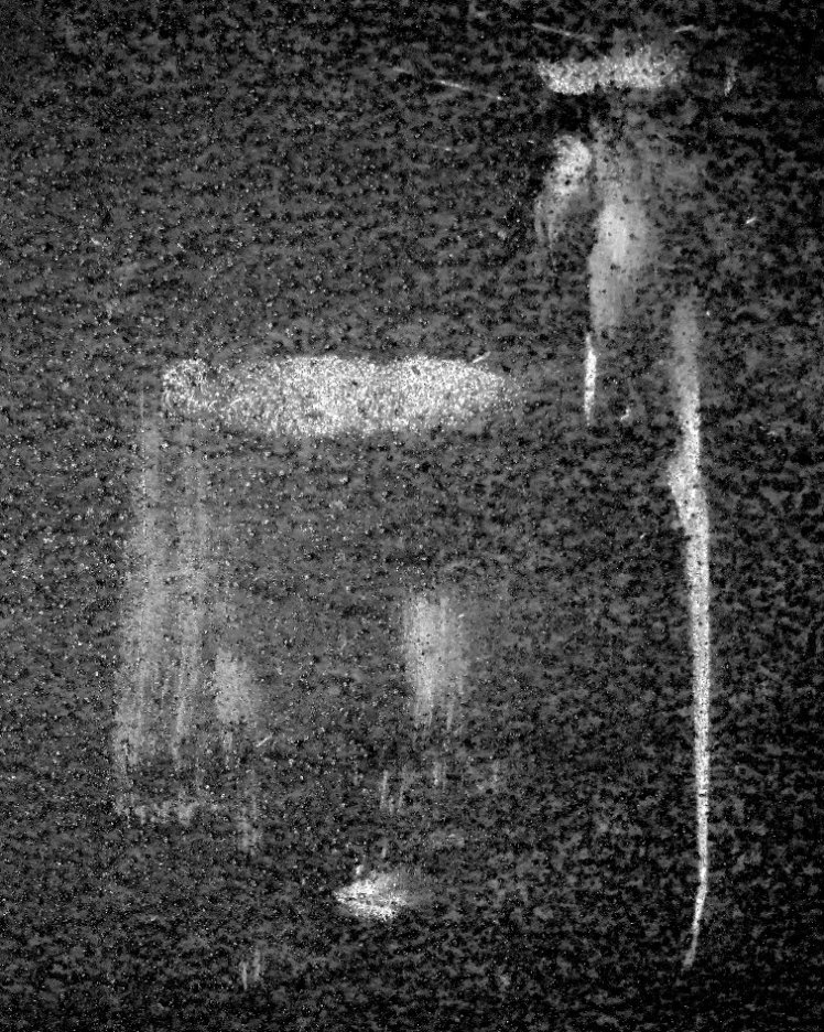 si tratta di un particolare di una porta in metallo, i segni sono tracce di fango, elaborata in b\n